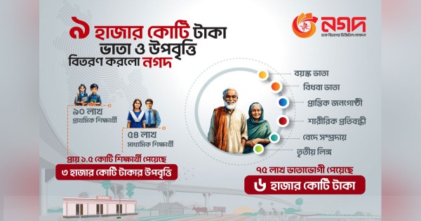 ২০২৪-২৫ অর্থবছরে ডাক বিভাগের মোবাইল আর্থিক সেবা নগদের মাধ্যমে সরকারের বিভিন্ন সামাজিক নিরাপত্তা ভাতা ও শিক্ষা উপবৃত্তি বিতরণে নতুন রেকর্ড সৃষ্টি হয়েছে। এ বছর মোট ৯ হাজার কোটি টাকার সরকারি সহায়তা বিতরণ করা হয়েছে ২ কোটিরও বেশি সুবিধাভোগীর মধ্যে।