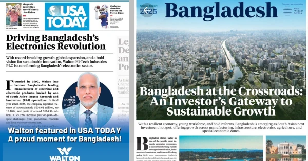 এই সাফল্যের স্বীকৃতিস্বরূপ, ওয়ালটনের পথচলা এবার স্থান করে নিয়েছে ইউএসএ টুডেতে (USA TODAY), যা মার্কিন যুক্তরাষ্ট্রের (USA) শীর্ষ ৫টি সংবাদপত্রের মধ্যে অন্যতম। এই প্রকাশনা ওয়ালটনের উদ্ভাবনী যাত্রা, অভাবনীয় প্রবৃদ্ধি এবং কীভাবে তারা বাংলাদেশের ইলেকট্রনিক্স শিল্পকে নেতৃত্ব দিচ্ছে, তা তুলে ধরেছে।