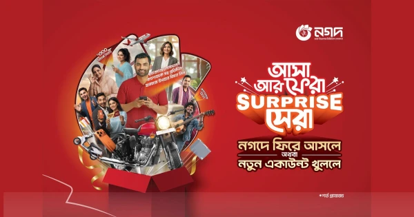 বছর শেষে আবারও গ্রাহকদের জন্য দারুণ অফার নিয়ে এসেছে মোবাইল ফাইন্যান্সিয়াল সার্ভিস ‘নগদ’। নতুন ক্যাম্পেইনটির নাম রাখা হয়েছে ‘আসা আর ফেরা সারপ্রাইজ সেরা’—যেখানে পুরনো, নিষ্ক্রিয় গ্রাহক আবার নগদে ফিরলেই এবং নতুন অ্যাকাউন্টধারীরা লেনদেন করলেই প্রতিদিন ক্যাশব্যাকসহ জিতে নিতে পারবেন গ্র্যান্ড গিফট হিসেবে রয়েল এনফিল্ড মোটরসাইকেল, আইফোন এবং আরও হাজারো পুরস্কার।