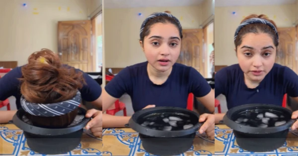 এরপরই বরফ পানির পাত্রে মুখ ডুবিয়ে ফেলেন কেয়া। মুখ তুলে বিরক্ত মুখ করে আবার বলেন, “এভাবেই আমি আসলে আমার সকালের ঘুম দূর করি।”