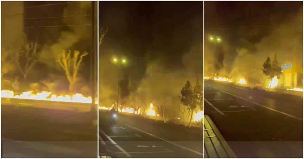 ইরানের সংস্কৃতি ও শিল্পবিষয়ক সামাজিক যোগাযোগ মাধ্যম এক্স অ্যাকাউন্ট ‘লিভিং ইন তেহরান’ একটি ভিডিও পোস্ট করেছে, যেখানে দেখা যাচ্ছে রাস্তার পাশে আগুন জ্বলছে এবং লেলিহান শিখা ছড়িয়ে পড়ছে।