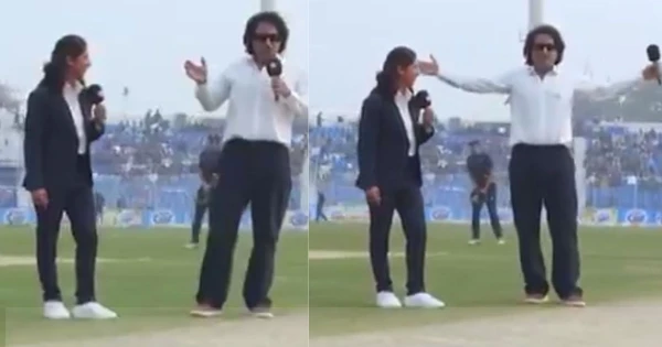 পাকিস্তান-দক্ষিণ আফ্রিকা ম্যাচ শুরুর আগে সাবেক ক্রিকেটার-প্রশাসক ও পিসিবি চেয়ারম্যান রমিজ রাজা সহ-কমেন্টেটরের সঙ্গে পিচ রিপোর্ট করতে মাঠে নামেন।