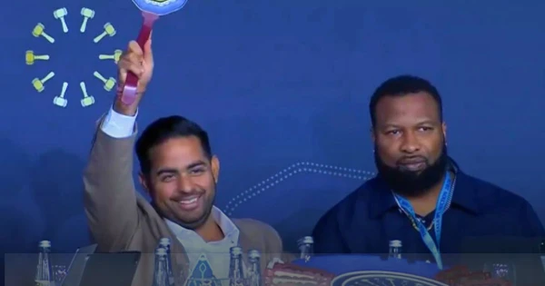 সম্পূর্ণ অর্থ নিয়ে মজা করতে আকাশ আম্বানি “থাম্বস আপ” করে বিডিং মুহূর্তটি ভাইরাল করেন। জানুন MI বাস্তবে ক্রয় করতে চাচ্ছেন না, কারণ তাদের কেবল ₹২.৬০ কোটি ছিল। প্রথম বিড আকাশ পর অন্যান্য ফ্র্যাঞ্চজির সাথে লাফিয়ে উঠল, আর আম্বানি শান্তভাবে ইতিহাসে হেটে অবস্থানে।