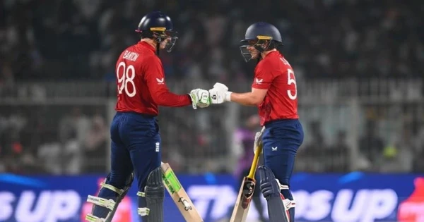 জবাবে ব্যাট করতে নেমে ইংল্যান্ডের শুরুটা ছিল একদম হতাশাজনক। প্রথম দুই ওভারেই ফিল সল্ট ও জস বাটলার আউট! হ্যারি ব্রুক ৪ রান করে ফিরলে স্কোর দাঁড়ায় ৮৬–৪। মনে হচ্ছিল ম্যাচটা হাতছাড়া হয়ে যাবে।