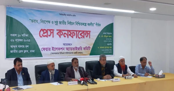 আসন্ন ত্রয়োদশ জাতীয় সংসদ নির্বাচন যেন অবাধ, নিরপেক্ষ ও সকলের কাছে গ্রহণযোগ্য হয়—এ লক্ষ্য সামনে রেখে ফেয়ার ইলেকশন অ্যাডভাইজরি কমিটি আজ ঢাকার জাতীয় প্রেসক্লাবে এক গুরুত্বপূর্ণ অবস্থানপত্র প্রকাশ করেছে। সংগঠনের সভাপতি ও সরকারের সাবেক অতিরিক্ত সচিব ড. খন্দকার রাশেদুল হকের সভাপতিত্বে অনুষ্ঠিত এই সংবাদ সম্মেলনে অবস্থানপত্র উপস্থাপন করেন কমিটির সদস্য-সচিব, সাবেক সচিব ও ঢাকা ইন্টারন্যাশনাল ইউনিভার্সিটির অধ্যাপক ড. মো. শরিফুল আলম।