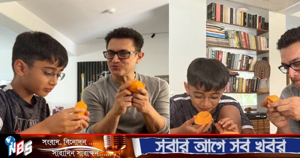 বাবা-ছেলের আম খাওয়ার কিছু ছবি শেয়ার করেছে আমির খানের প্রডাকশন টিম।
