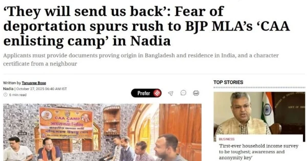 নদিয়ার পালপাড়া গ্রামে চলছে এক অদ্ভুত দৃশ্য—দীর্ঘ লাইন, কাগজপত্র হাতে উদ্বাস্তুদের মুখে উদ্বেগ আর আশার ছাপ। পেট্রাপোল সীমান্ত থেকে মাত্র ৪৫ কিলোমিটার দূরের এই গ্রামে মানুষ ভিড় জমাচ্ছেন নাগরিকত্ব সংশোধনী আইন বা সিএএ-এর আওতায় আবেদন করতে। তাদের মধ্যে অনেকে ভয় পাচ্ছেন, নিবন্ধন না করলে হয়তো বাংলাদেশে ফেরত পাঠানো হবে।
