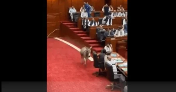সামাজিক যোগাযোগমাধ্যমে কয়েকদিন ধরে ঝড় তুলেছে একটি ভিডিও—যেখানে দেখা যায়, পাকিস্তানের জাতীয় সংসদের ভেতরে হঠাৎ একটি গাধা ঢুকে পড়ে তোলপাড় সৃষ্টি করেছে। ভিডিওতে টেবিল-চেয়ার ভেঙে ছিটকে পড়ছে, আইনপ্রণেতারা চমকে উঠে দাঁড়াচ্ছেন—এমন বিশৃঙ্খল দৃশ্য মুহূর্তেই ভাইরাল হয়ে পড়ে।