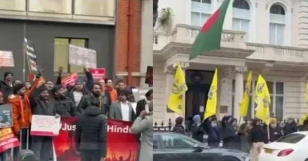 লন্ডনে বাংলাদেশ হাইকমিশনের বাইরে শনিবার হিন্দুত্ববাদীদের নেতৃত্বে একটা বিক্ষোভের আয়োজন করা হয়েছিল, কিন্তু খালিস্তানপন্থীরা এসে সেটাতে বাধা দিয়ে বসে। বিক্ষোভ চলাকালীন খালিস্তানি গ্রুপ ভারতবিরোধী স্লোগান দিতে থাকে আর খালিস্তানি পতাকা দেখাতে শুরু করে।