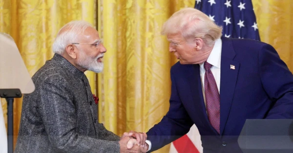 ট্রাম্প মোদিকে ‘চমৎকার মানুষ’ হিসেবে বর্ণনা করেন এবং বলেন, “তার সঙ্গে আমার সম্পর্ক ভালো, যদিও বর্তমানে তিনি আমার ওপর খুশি নন, কারণ এখন ভারতের অনেক পণ্যের ওপর উচ্চ শুল্ক আরোপ হয়েছে।”