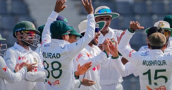 টাইগারদের পক্ষে মেহেদী হাসান মিরাজ নেন তিন উইকেট, অভিষিক্ত হাসান মুরাদ নেন দুইটি, আর তাইজুল ইসলাম ও দুই পেসার নাহিদ রানা ও হাসান মাহমুদ নেন একটি করে উইকেট।