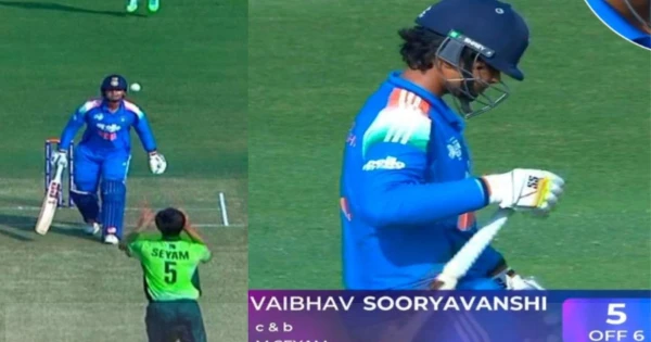 পাকিস্তানের পেসার মোহাম্মদ সায়্যাম নিউ বল হাতে নেন এবং ভারতের সবচেয়ে ধ্বংসাত্মক ব্যাটসম্যান বৈভব সূর্যবংশীকে উইকেট দিয়ে পাকিস্তানের জন্য প্রথম সাফল্য পান। তিনি বাঁহাতি এই ব্যাটসম্যানকে একটি স্লো ডেলিভারি দিয়ে ফাঁদে ফেলেন, যার গতি সঠিকভাবে বুঝতে ব্যর্থ হন সূর্যবংশী।