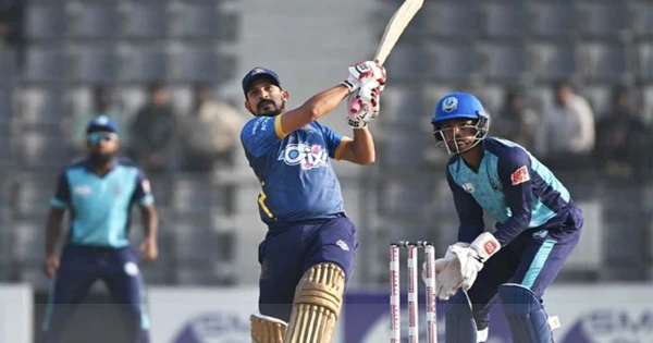 জয়ের পথে অবশ্য শুরুটা খুব একটা সুবিধের হয়নি। রান তাড়া করতে নেমে দলীয় ১৪ রানে দুই ওপেনারকে হারায় ঢাকা। দুটি উইকেটই নেন হাসান মাহমুদ।