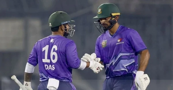 এরপর তিনে নামা লিটন দাসকে সাথে নিয়ে পাল্টা আক্রমণ চালান সাইফ হাসান। দুজনেই ফিফটির দেখা পান। ৩০ বলে ৫০ রান করে ফিরেন সাইফ। তবে দলকে জিতিয়ে মাঠ ছেড়েছেন লিটন। ধুমকেতু অধিনায়ক অপরাজিত ছিলেন ৪৩ বলে ৬৫ রান করে। দুরন্তর হয়ে ৪ ওভারে ২৩ রান দিয়ে ৩ উইকেট নেন এসএম মেহরব হোসেন অহিন।