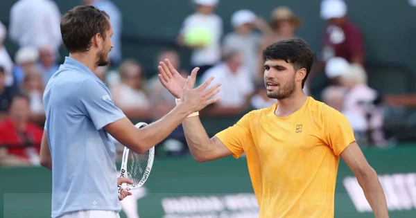 ইন্ডিয়ান ওয়েলসের সেমিফাইনালে বিশ্বের এক নম্বর টেনিস তারকা কার্লোস আলকারাজকে হারিয়ে ফাইনালে পৌঁছেছেন দানিল মেদভেদেভ। ৬-৩ ও ৭-৬ (৭-৩) ব্যবধানে আলকারাজকে হারান তিনি। শিরোপা নির্ধারণী ফাইনালে বিশ্বের দুই নম্বর টেনিস তারকা ইয়ানিক সিনারের বিপক্ষে খেলবেন মেদভেদেভ।