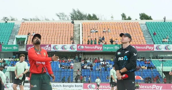 প্রথম টি-টোয়েন্টি ম্যাচে আজ মুখোমুখি বাংলাদেশ ও নিউজিল্যান্ড। চট্টগ্রামের জহুর আহমেদ চৌধুরী স্টেডিয়ামে টস জেতে বাংলাদেশ। আর সেটা জিতেই সাজঘরে পাঠান কিউই ব্যাটারদের।